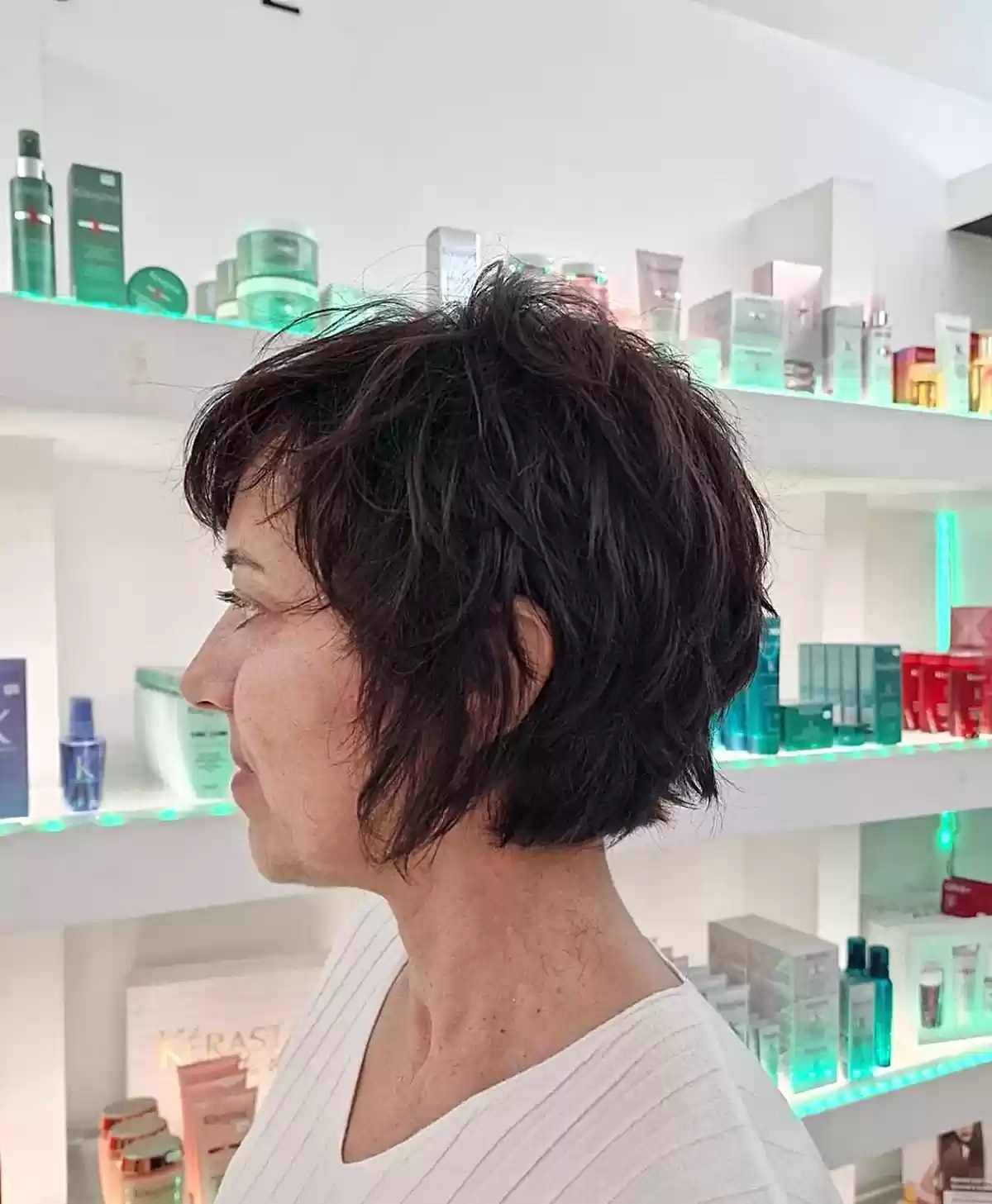The feminine pixie hairstyle combines soft layers and gentle waves to create a tender and delicate look. This style is ideal for women who want to embrace their femininity while enjoying the ease of a short haircut.